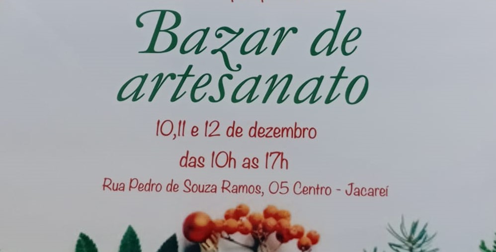 A Associação de Combate ao Câncer de Jacareí, realiza nos dias 10, 11 e 12 de dezembro, das 10h às 17h o “Bazar de Artesanato” para a entidade, na rua Pedro de Souza Ramos, número 5 – no centro.