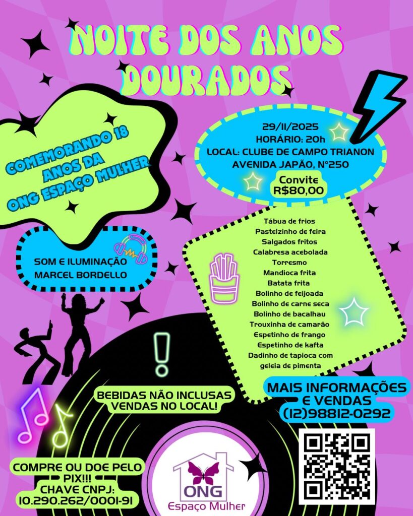 Reserve o seu convite e dance ao som dos clássicos que marcaram época e reviva momentos especiais ao lado de amigos e familiares. Além de se divertir, sua presença ajudará a manter viva a missão da ONG Espaço Mulher no combate à violência doméstica.