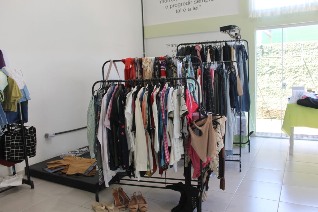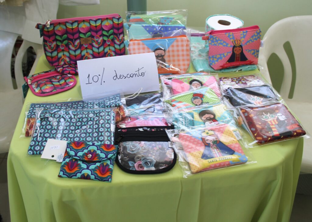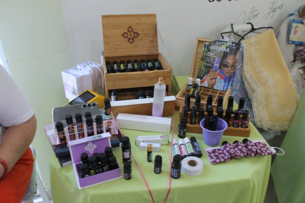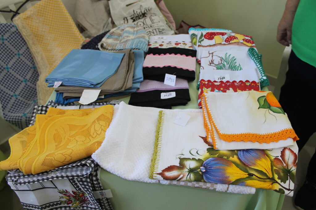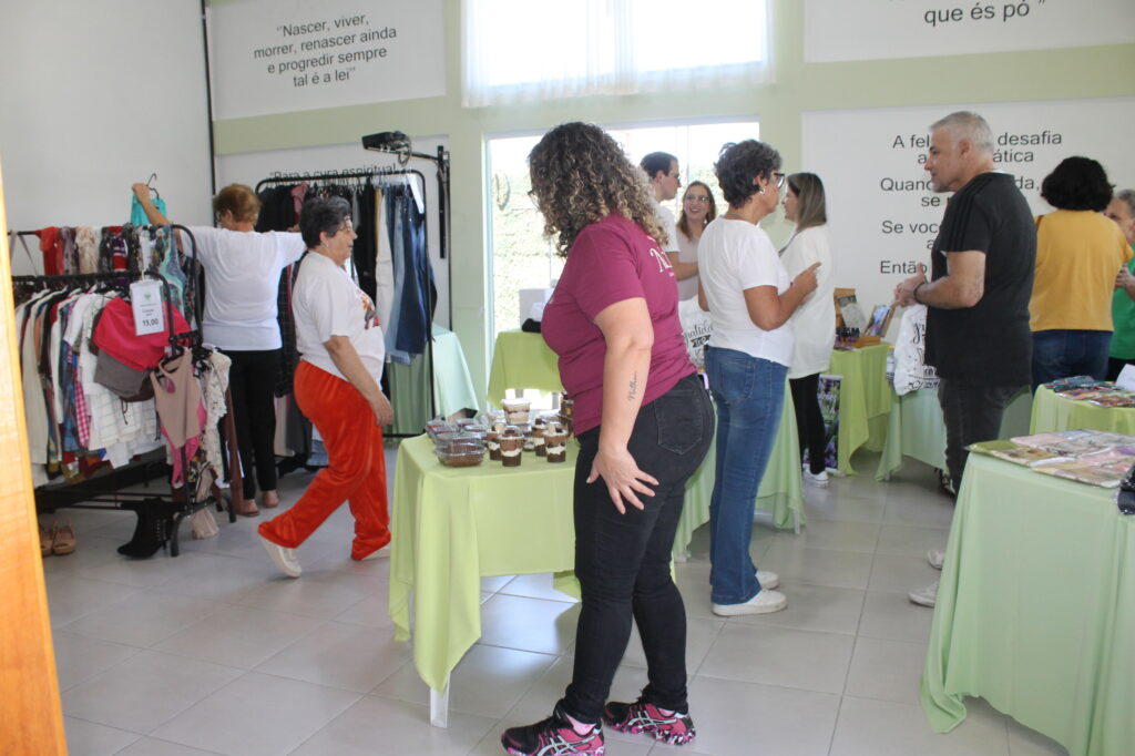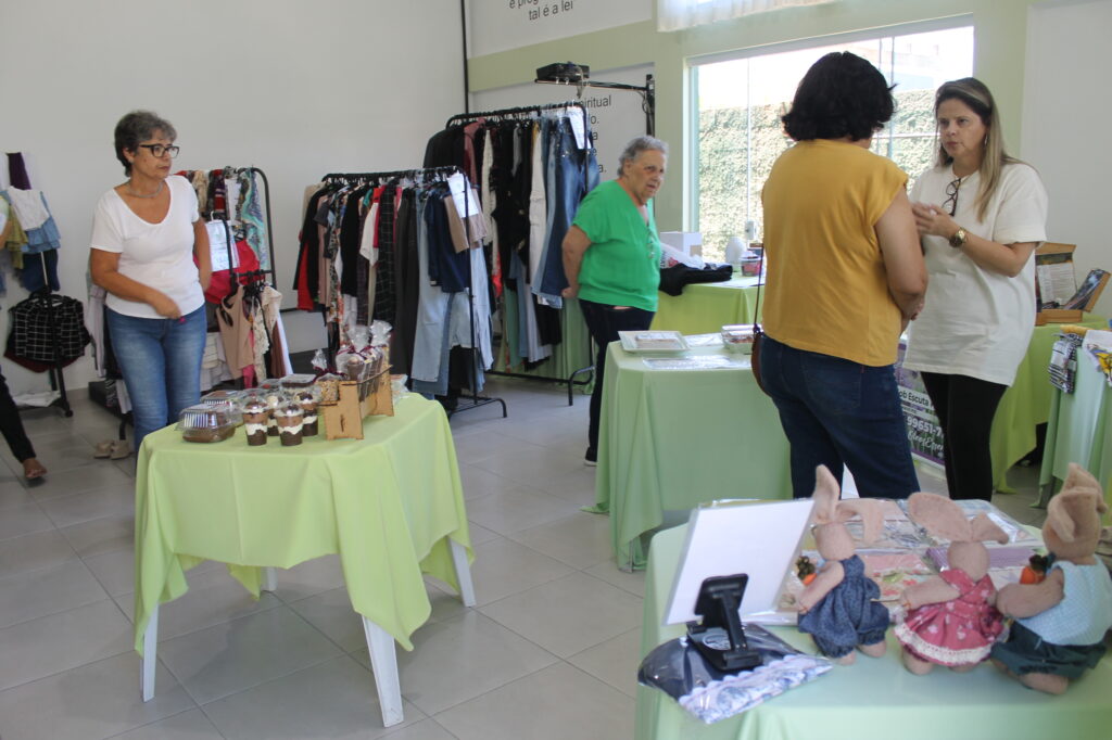 Além de peças seminovas do bazar, teve parcerias com vários expositores como: panos de prato, óleos essenciais, artesanatos em bolsa, bolos, pães, tortas e salgados, e a simpatia e acolhimento das voluntárias.