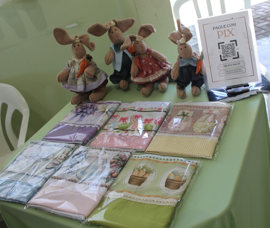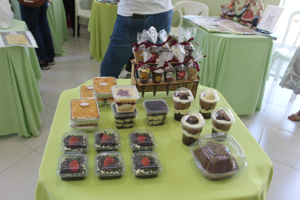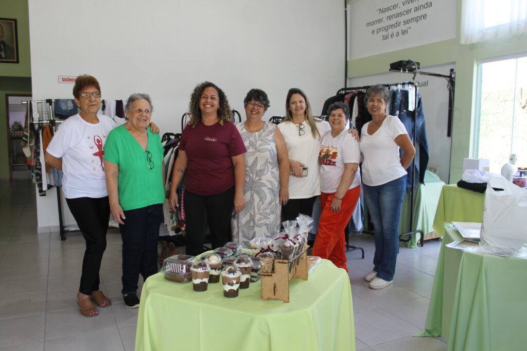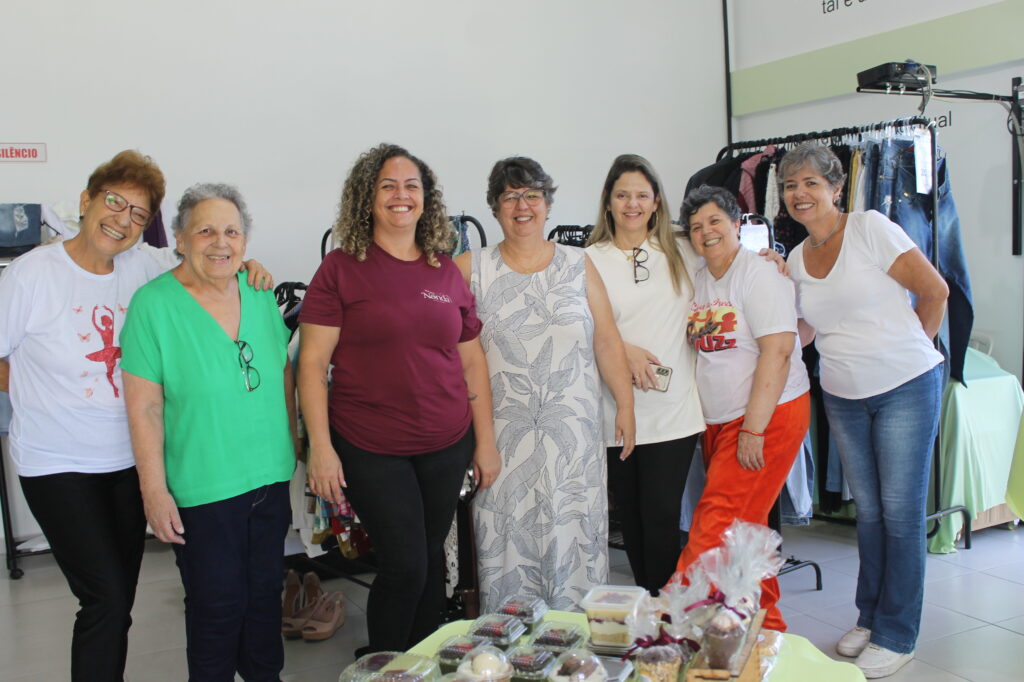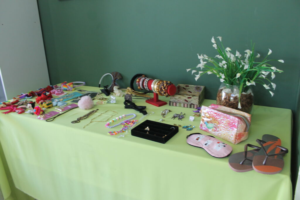 Além de peças seminovas do bazar, teve parcerias com vários expositores como: panos de prato, óleos essenciais, artesanatos em bolsa, bolos, pães, tortas e salgados, e a simpatia e acolhimento das voluntárias.