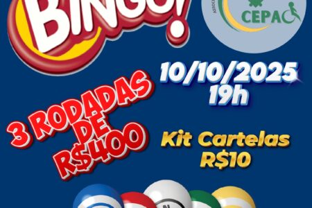 “BINGO CEPAC” acontece em outubro (10) Os prêmios são 3 rodadas de R$ 400,00. O…