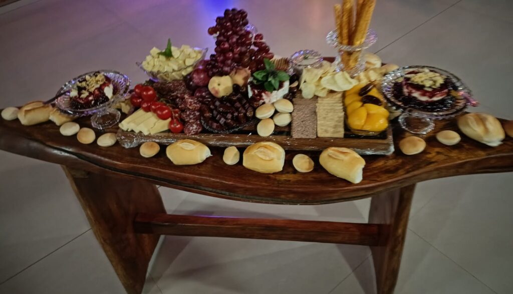 Muito caprichoso o anfitrião serviu delícias preparadas pela cozinheira Diana, em recepção muito bem organizada, tudo feito por ele, com muito requinte e finesse.
