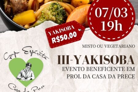 A Casa da Prece realiza o III- YAKISOBA dia 7 de março com retirada no local