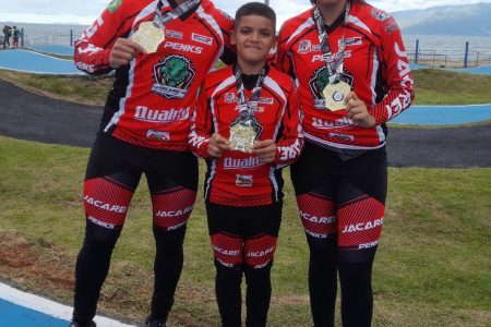 Atletas de Jacareí, durante disputa em Caraguatatuba  Os campeões Dalton, Miguel e Verônica  Quatro pilotos…