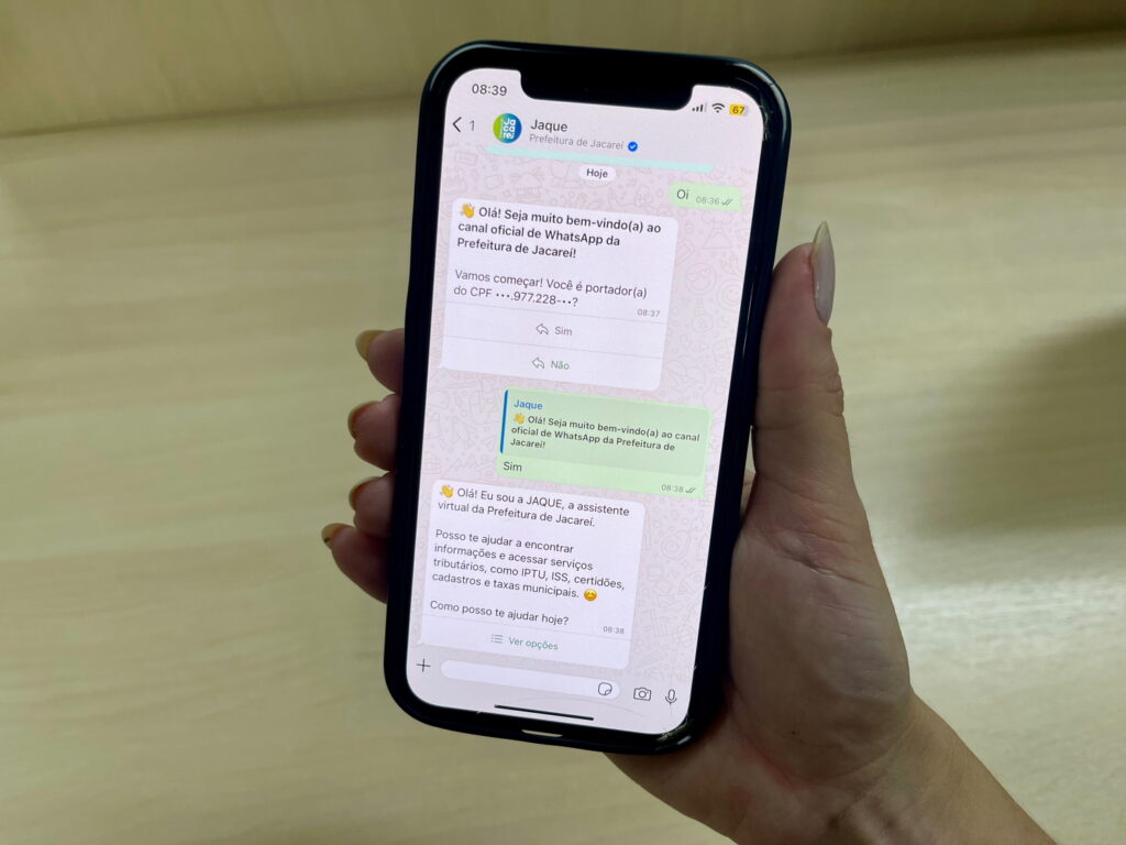 Outra facilidade é a emissão da guia de pagamento pelo WhatsApp oficial da Prefeitura de Jacareí, por meio da assistente virtual inteligente “Jaque”. Para acessar o serviço, basta: