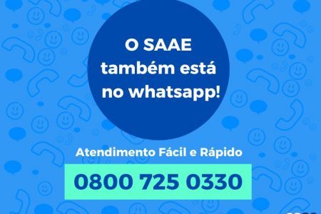 Saae Jacareí disponibiliza atendimento via Whatsapp, por meio do número 0800 725 0330