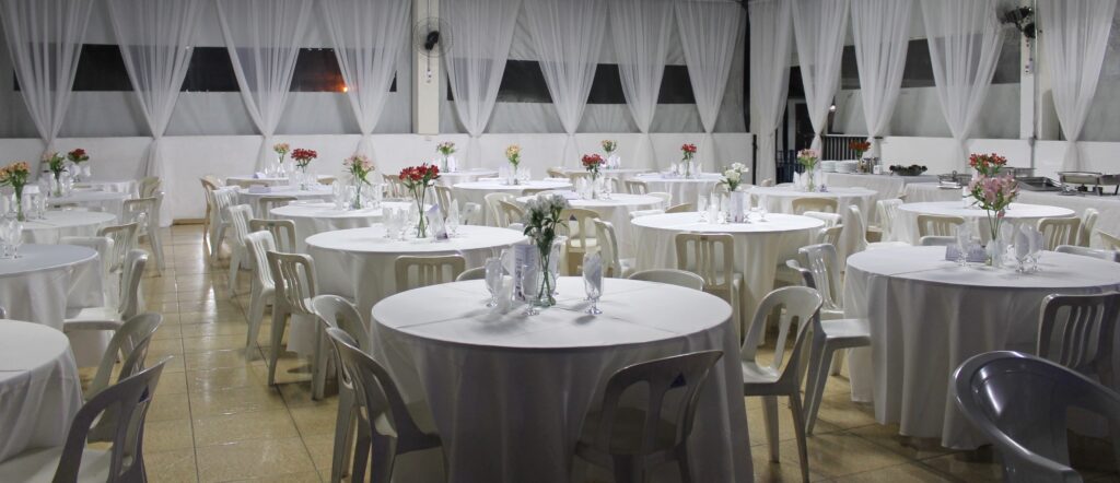 O salão caprichosamente arrumado para receber os convidados