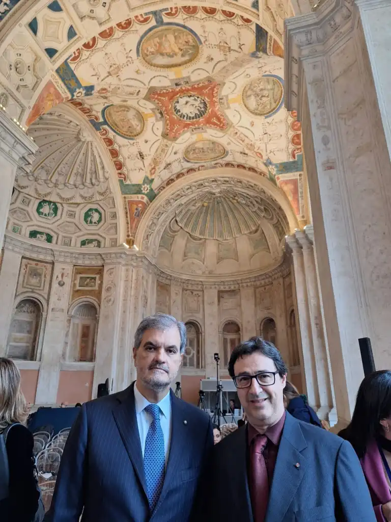 Renato Mosca, embaixador do Brasil na Itália, e Paulo Esper na Villa Madama. A conferência contou com a presença de diversas autoridades italianas e estrangeiras, como os ministros italianos Antonio Tajani (Relações Exteriores e Cooperação Internacional) e Anna Maria Bernini (Universidade e Pesquisa), e ministros e secretários de vários países.