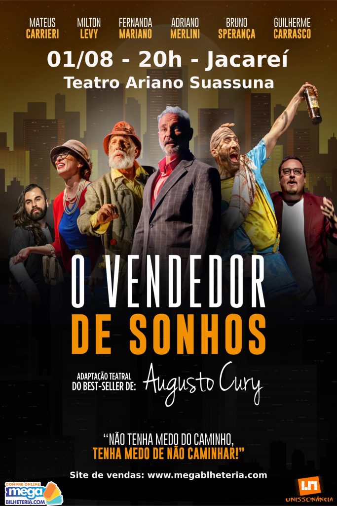 Na sexta-feira, dia 1 de agosto às 20h no Teatro Municipal Ariano Suassuna em Jacareí, acontece a peça “O VENDEDOR DE SONHO”, baseada no Best Seller do psiquiatra Augusto Cury, que já é um sucesso de público.