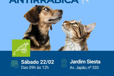 Vacinação antirrábica gratuita para cães e gatos acontece neste sábado (22), no Jardim Siesta. Neste…